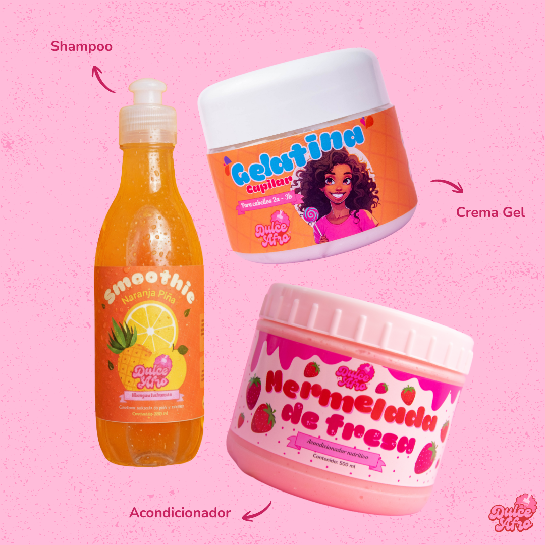Lava tu cabello con el shampoo Smoothie Naranja Piña🍊🍍 y finaliza con el acondicionador nutritvo Mermelada de Fresa🍓.